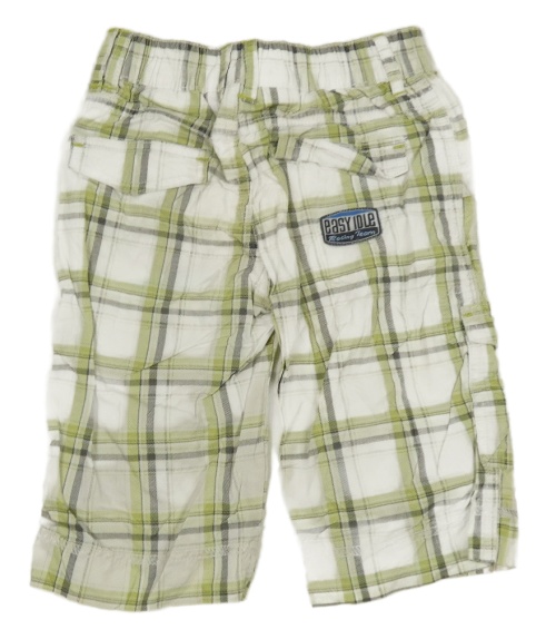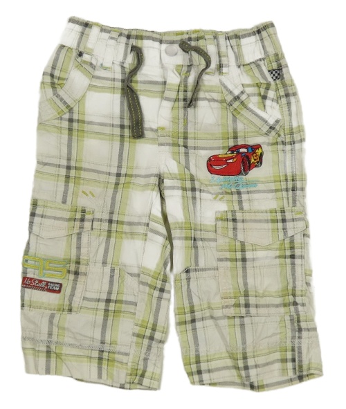Bielo-zeleno-sivé kockované plátenné 3/4 kalhoty - Autá