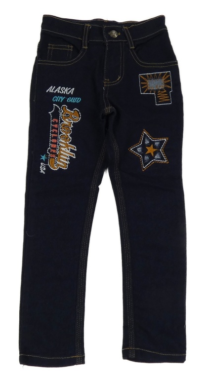 Tmavomodré skinny rifle s nápismi a hviezdou