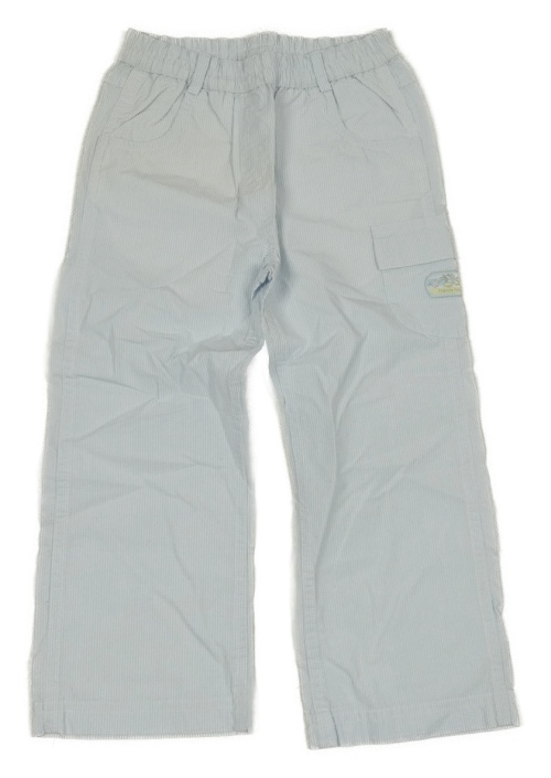 Světlemodro-biele pruhované plátenné nohavice s vreckom
