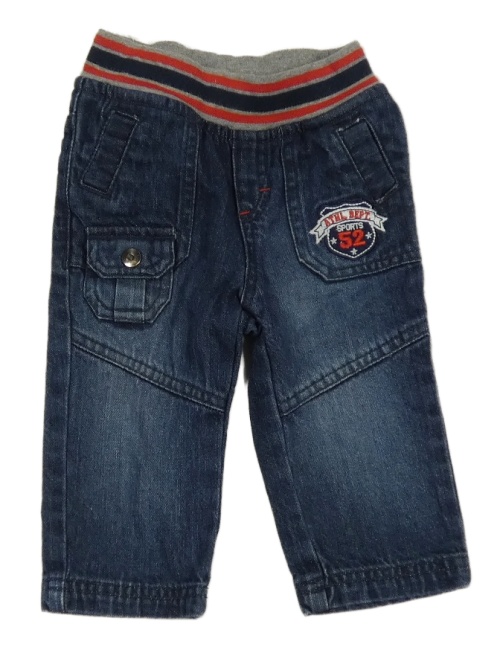 Tmavomodré rifle s výšivkou a úpletovým pasom C&A