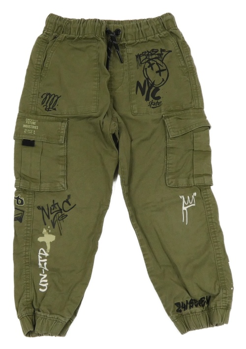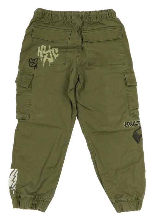 Khaki plátenné cuff cargo nohavice s potlačou Next