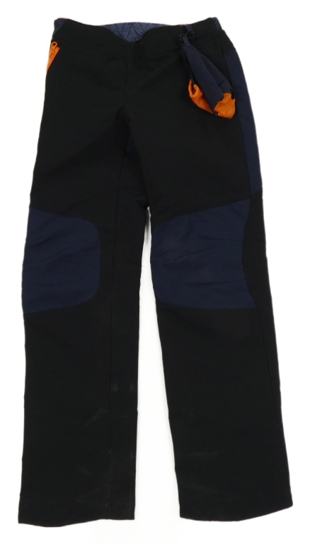 Tmavomodro-černé šusťákové outdoorové kalhoty + sáček Decathlon