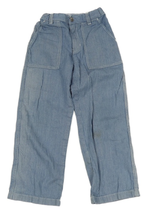 Tmavomodro-biele pruhované plátenné nohavice