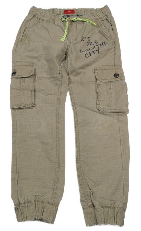 Béžové kockované plátenné cargo cuff nohavice s nápisom S. Oliver