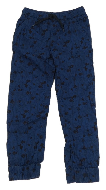 Tmavomodré plátenné cuff nohavice s rybičkami Kiki&Koko