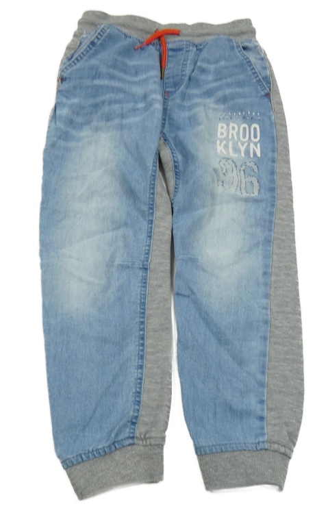 Svělemodro-sivé cuff rifle s nápisom a úpletovým pasom