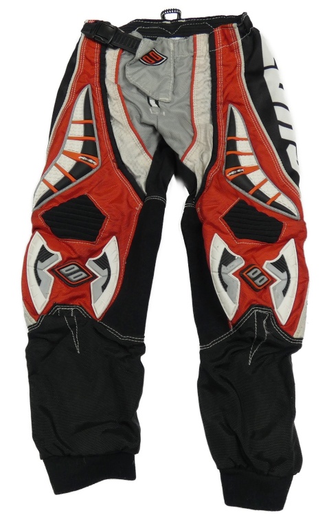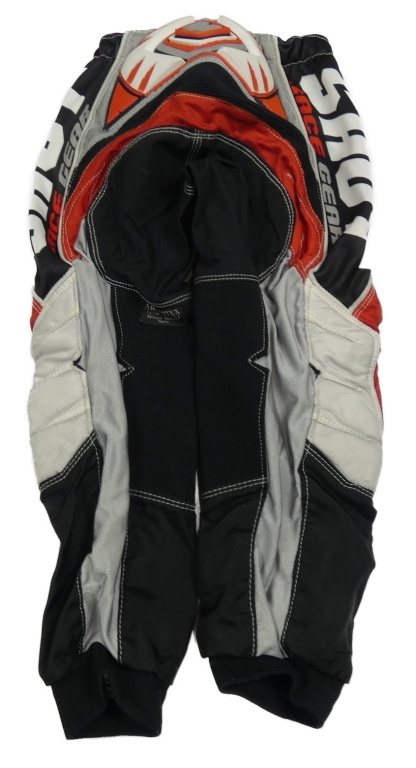 Čierno-červeno-sivo-biele cuff motorkářské nohavice s chráničmi SHOT