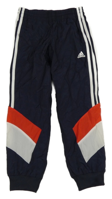 Tmavomodro-bielo-červené šušťákové nohavice s pruhmi Adidas