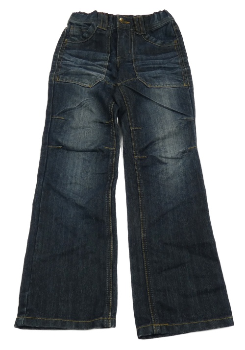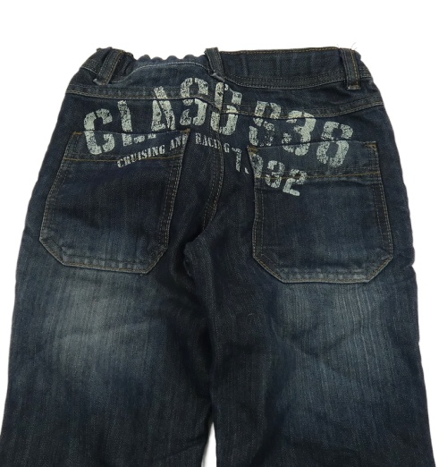 Tmavomodré rifle s nápisom