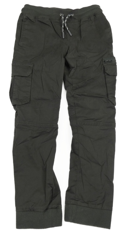 Tmavosivé cargo cuff plátenné nohavice s úpletovým pasom C&A