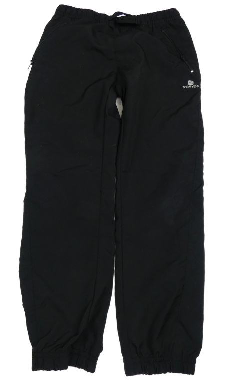 Čierne šušťákové funkčné nohavice s logom Domyos