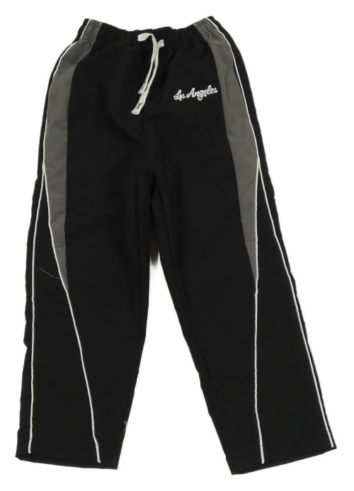 Čierno-tmavosivé šušťákové nohavice s nápisom
