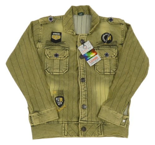 Nové - olivovo-černý melírovaný pruhovaný bomber riflového vzhledu s nášivkami a golierikom