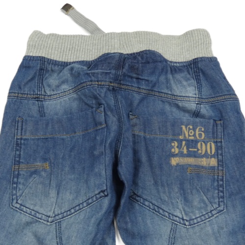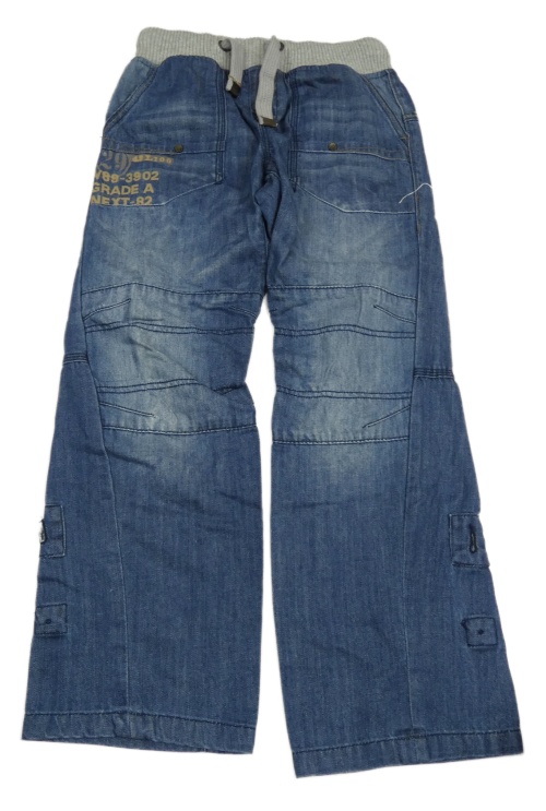 Modré rolovacieá rifle s nápismi a číslami a sivým úpletovým pasom Next