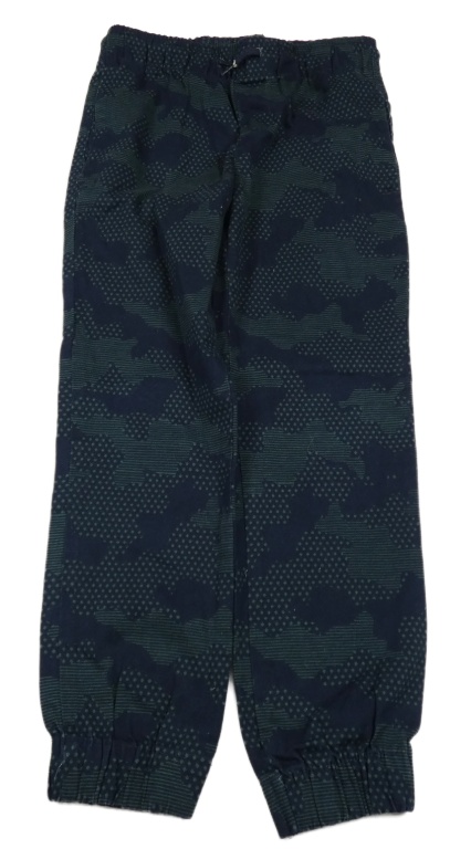 Tmavomodro-zelené vzorované plátenné cuff nohavice