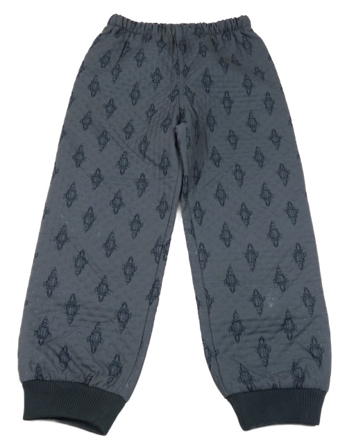 Tmavomodré šušťákové lehce zateplené nohavice s raketami