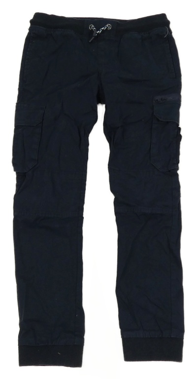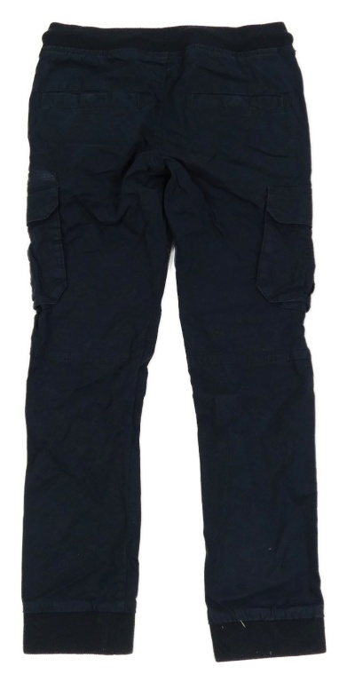 Tmavomodré plátenné cuff nohavice s úpletovým pasom a vreckami C&A