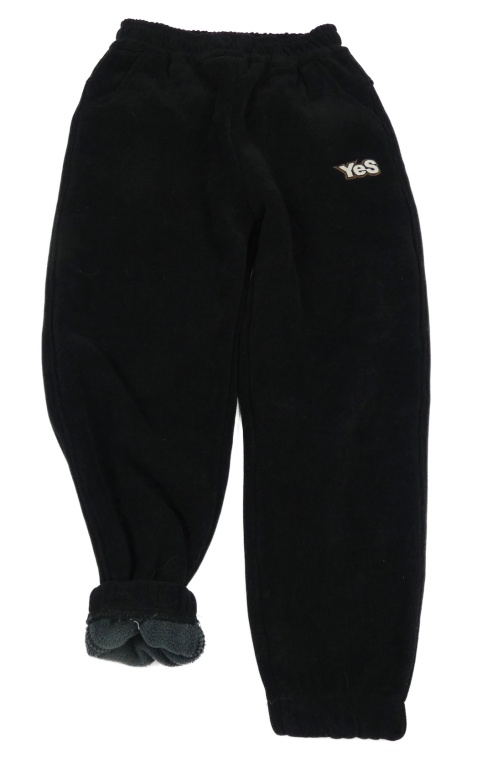 Čierne rebrované zamatové zateplené teplákové nohavice