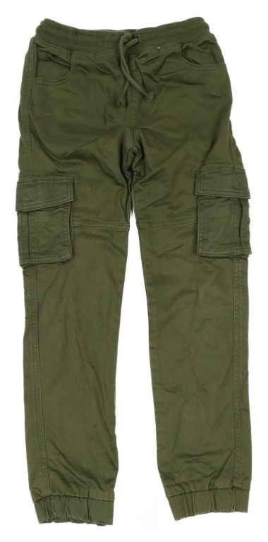 Khaki plátenné cargo cuff nohavice s úpletovým pasom Tu