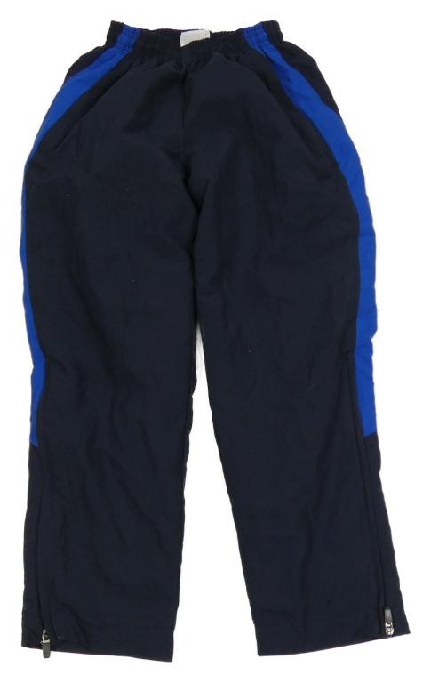 Tmavomodro-modré šušťákové podšité nohavice s pruhmi