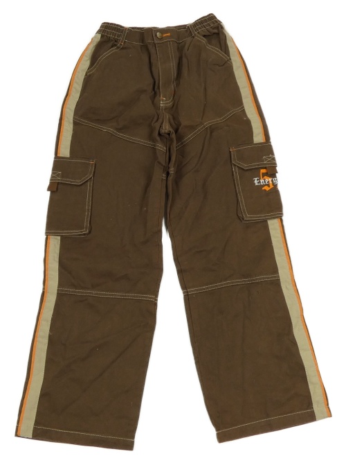 Hnedé plátenné nohavice s béžovým pruhom a vreckami