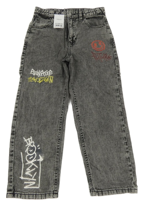 Nové - Sivé rifle s nápismi a obrázkami Next