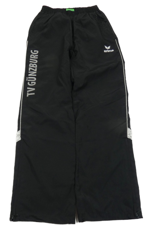 Čierne šušťákové nohavice s nápisom a pruhmi Erima
