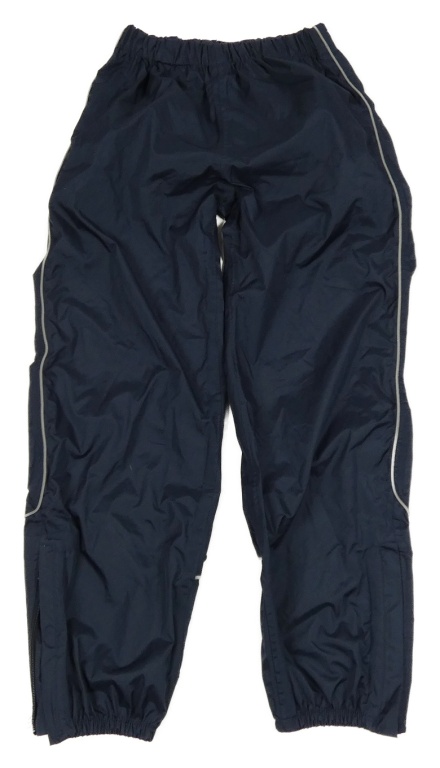 Tmavomodro-biele šušťákové nohavice s pruhmi