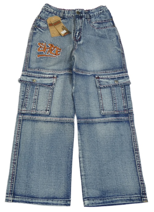 Nové - Tmavomodro-biele melírované rifle s výšivkou