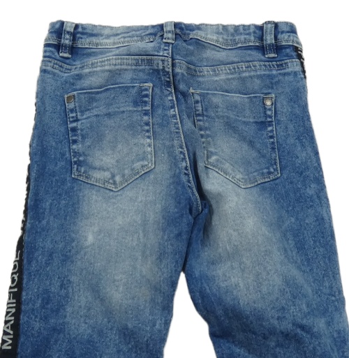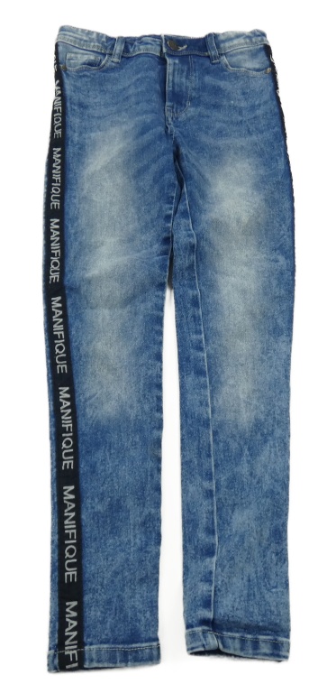 Tmavomodré skinny rifle s pruhmi a nápismi