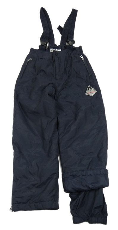 Tmavomodré šusťákové laclové oteplovačky s nášivkou