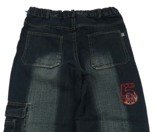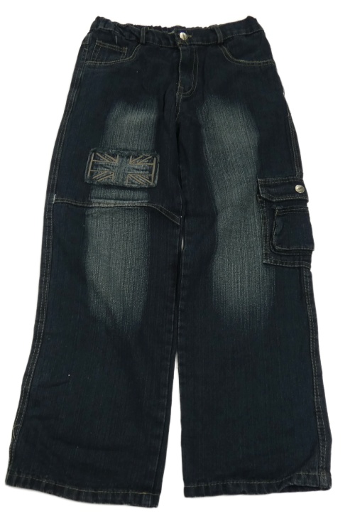 Tmavomodré široké rifle s vreckom a vlajkou