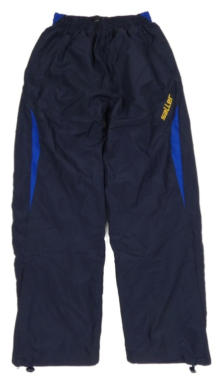 Tmavomodro-zafírové šušťákové športové nohavice s logom saller
