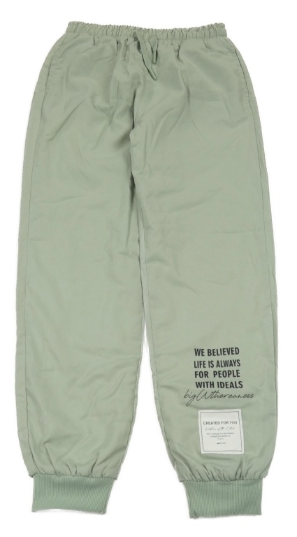 Svetlozelené šušťákové zateplené cuff nohavice s nápismi