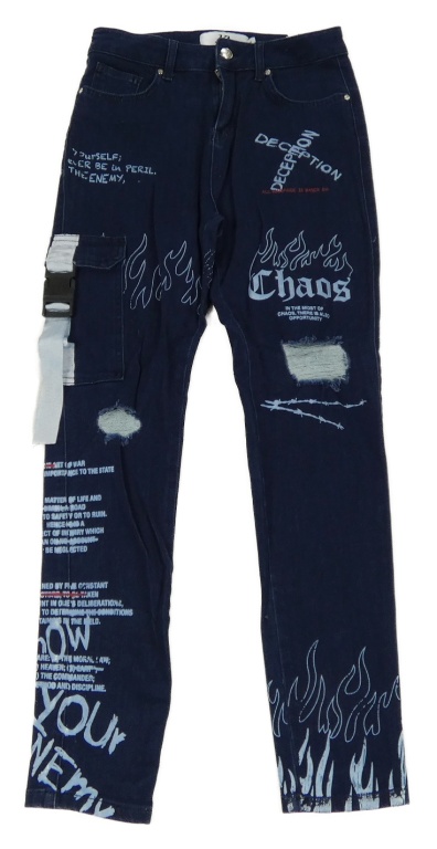 Tmavomodré skinny rifle s nápismi a vyšúchaním