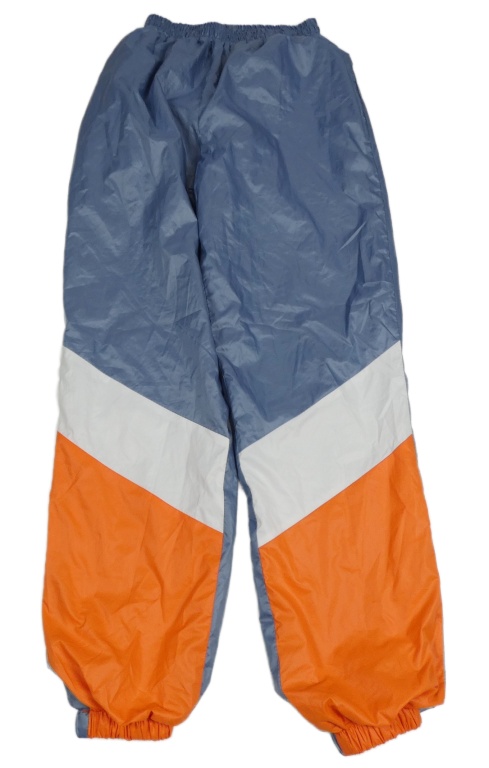 Modrošedo-bielo-oranžové šušťákové nohavice