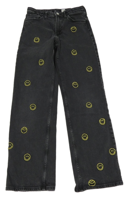 Tmavosivé wide leg rifle so smajlíkmi H&M