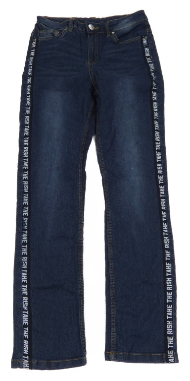 Tmavomodré rifle s pruhom s nápismi Y.F.K.