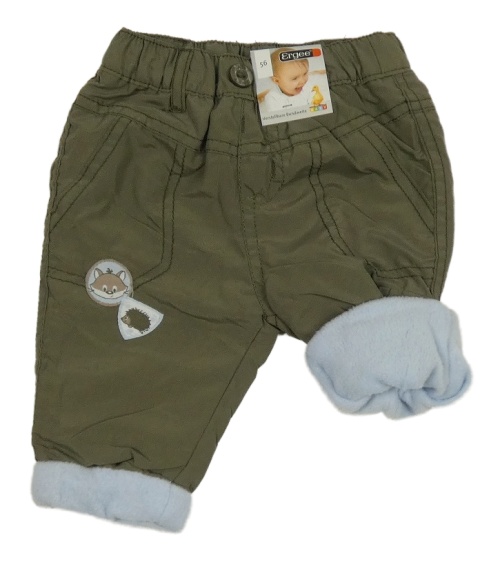 Nové - khaki šušťákové podšité nohavice so zvieratkami Ergee