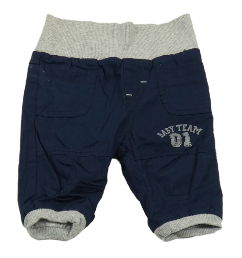 Tmavomodré plátenné podšité nohavice s číslom a úpletovým pasom Topomini