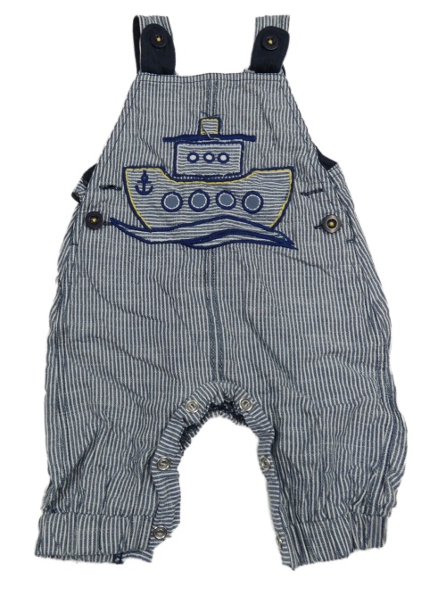 Tmavomodro-biele pruhované plátenné na traké nohavice s lodí St. Bernard