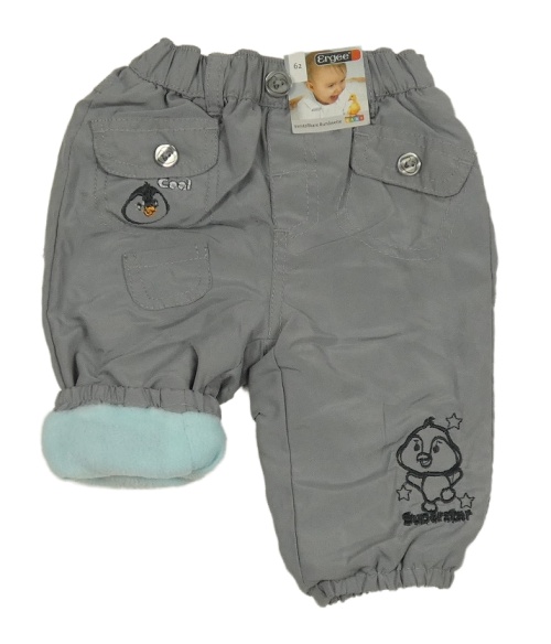 Nové - sivé šušťákové podšité nohavice s tučňáčkem Ergee