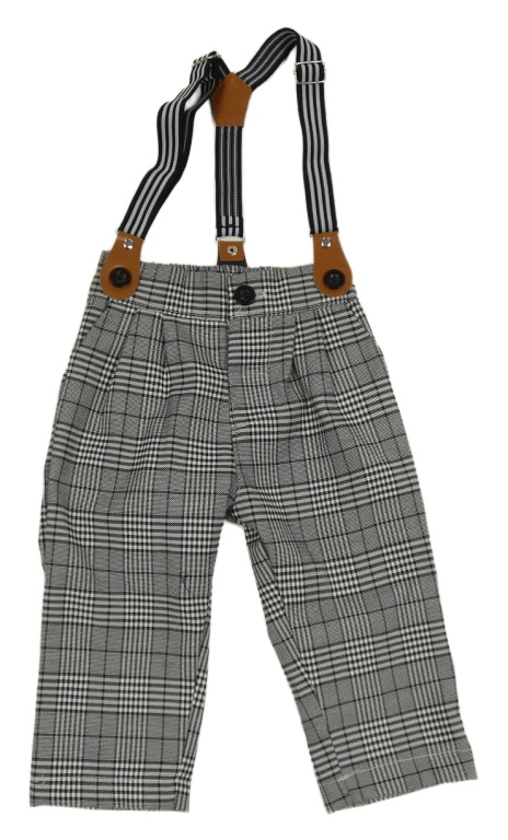 Čierno-biele kockované nohavice s trakami Shein