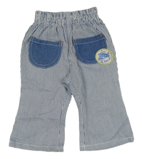Bielo-modré pruhované nohavice s vreckami a nášivkou