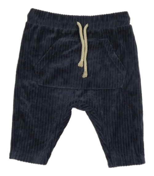Tmavomodré rebrované zamatové nohavice s vreckom Zara