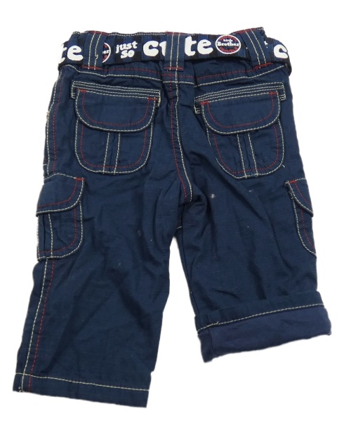 Nové - tmavomodré kockované cargo plátenné podšité nohavice s nášivkou a opaskom George