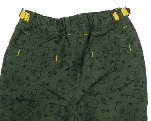 Khaki chino šušťákové podšité nohavice s medvedíkmi a liškami Ergee