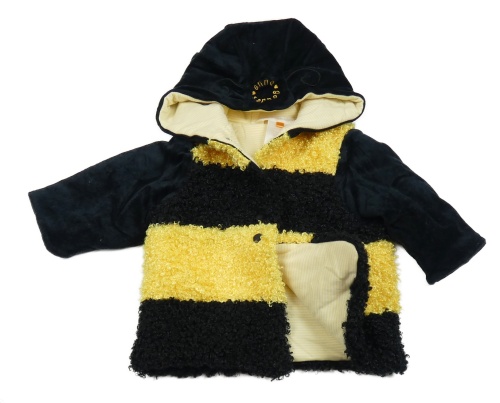 Čierno-žltá pruhovaná huňatá prepínaci zateplená mikina s kapucňou