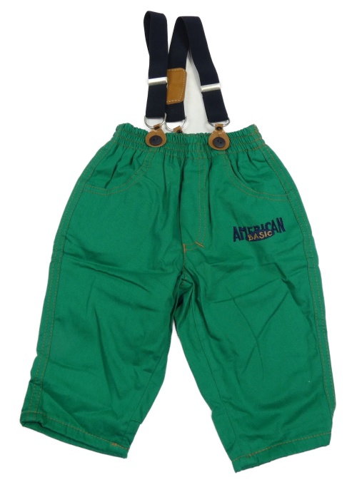Tmavozelené plátenné podšité nohavice s nápismi a trakami