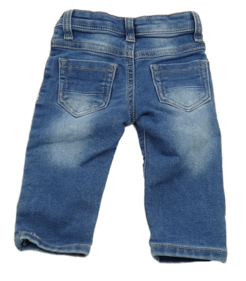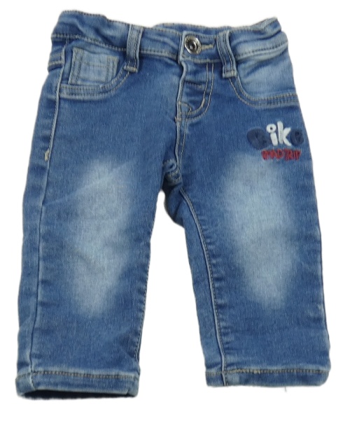 Modré teplákové rifle s nápisom
